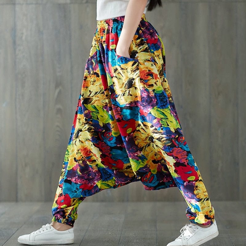 Abstract Flowers Colorful Harem Pants