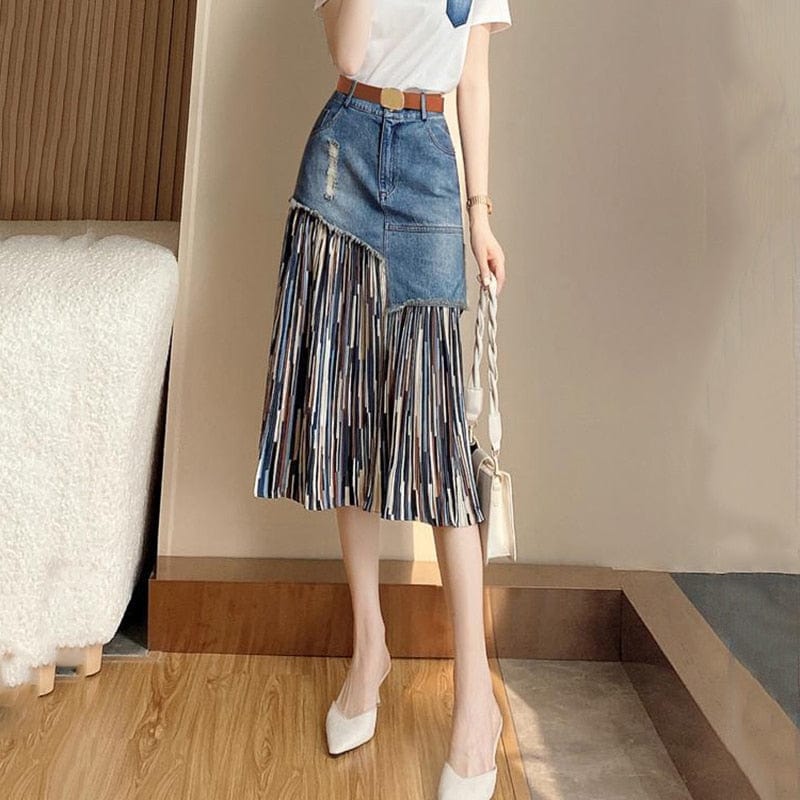 Asymmetrical Patchwork Denim Skirt