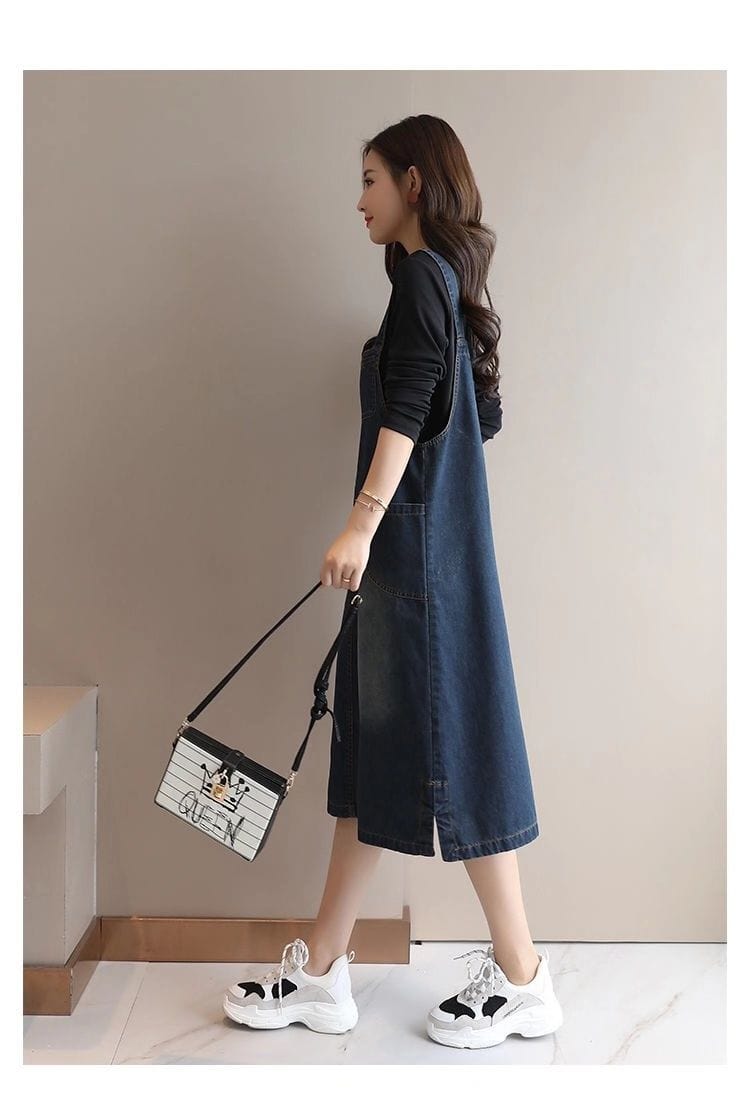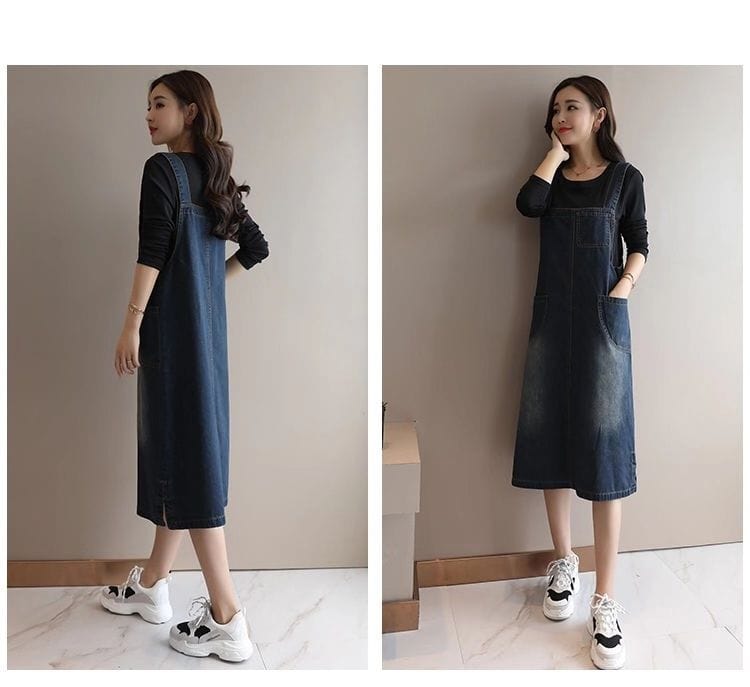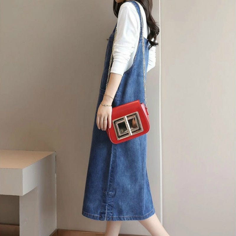 Add a feminine touch to your wardrobe with thisuniqueBack At It Denim Overall Dress. Made in soft denim with a square neck and pretty wide shoulder strapdetailing. thisoverall dress is cut in a loose shape. Team with summer flats or low-cut sneakers to finish your look.