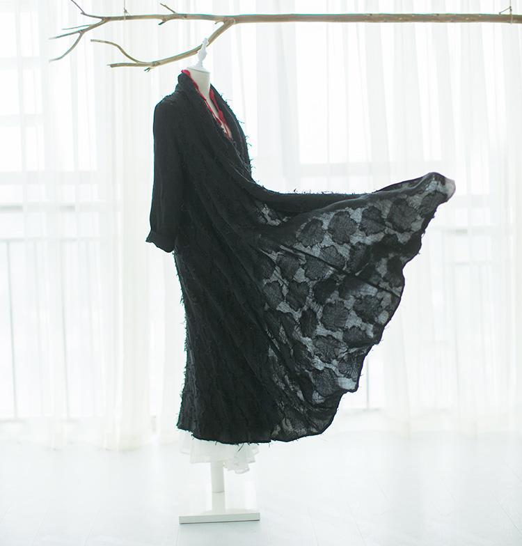 Be daring in the dark vampy color of our Black Linen Cardigan Trench Coat. This trench coat flows with its two layers of linen fabric. Its first sheer layer is embellished with a floral stitched pattern while its solid second layer is meant to warm you up as the days get chilly. Slip this trench on for fall and winter days to create an intense look that is sure to catch eyes.
