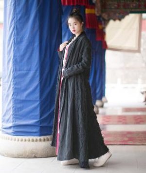 Black Linen Cardigan Trench Coat | Mandala