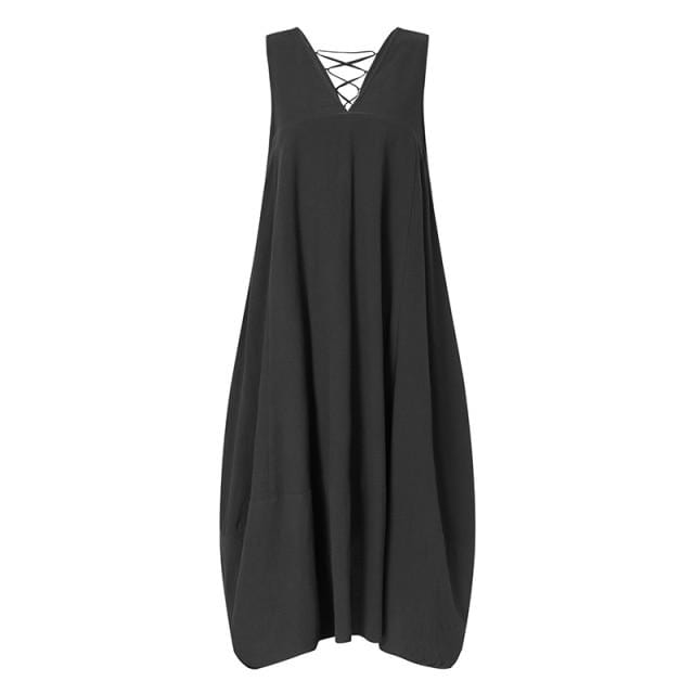 Relax in style while wearing our Casual V-Neck Sleeveless Midi Dress. You can kick back in a fashionable way when wearing this dress. Its wide skirt and casual look make it easy to wear and when paired with its cotton fabric it is a dream. The light and airy fit is made even more idealistic for warmer days with the sleeveless cut. The versatile solid print can be stylized with a wide belt and kitten heels paired with large sunglasses and a chunky bracelet for you to be ready to take on the day.