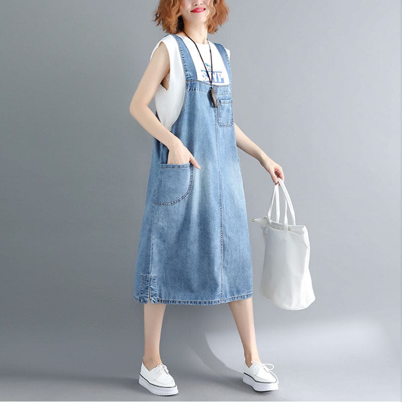 A striking choice to see you through casual days. This Casual Vibes MidiOverall Dress features a square neckline. sleeveless cut. A-line silhouette. and a relaxed fit. Made from a lightweight soft fabric. it is easy to slip on with your favorite pair of sandals on casual summer days.