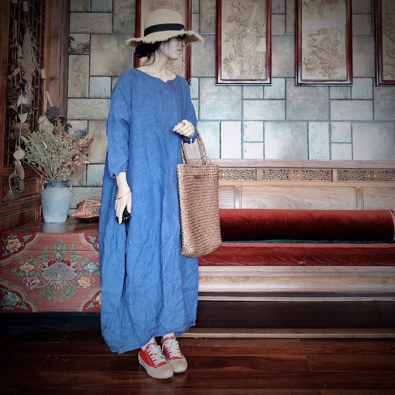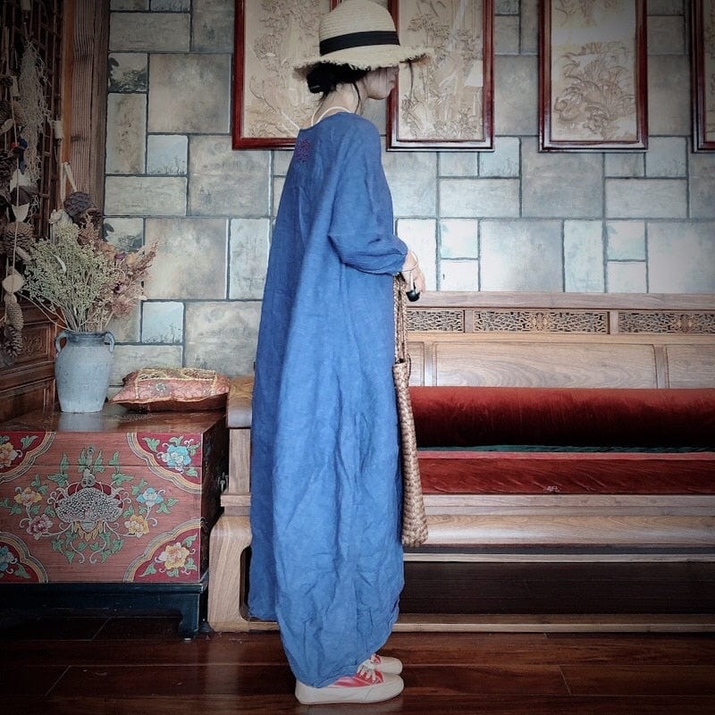 Looking for a cozy and comfortable robe to lounge around in? Look no further than our Embroidered Linen Robe! Made from a soft and breathable linen fabric. this blue robe is perfect for relaxing in. The oversized fit and long length make it ideal for lounging around the house or getting ready for your day. Plus. the embroidered detailing adds a touch of luxury. Whether you’re looking for a gift for someone special or treating yourself. this robe is sure to please.