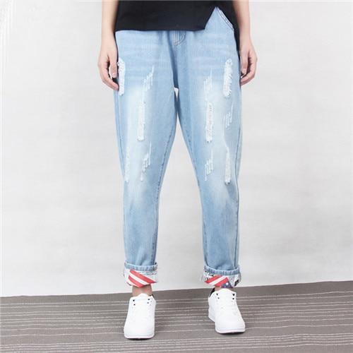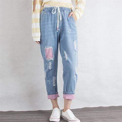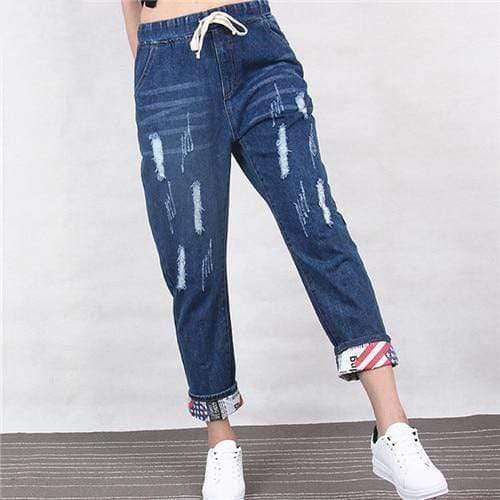 Add rich color to your denim collection with these Distressed Loose Harem Jeans. Crafted from sturdy denim materialin a versatile hue that suits a year-round color palette. the loose-fit style never fails to smarten an outfit up. Top them off with a crisp blouse and pare-down with loafers.