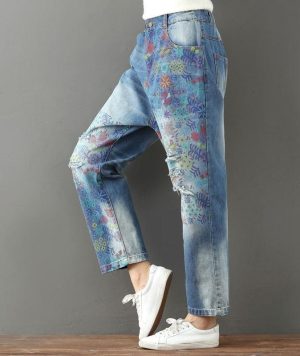 Add rich color to your denim collection with these Distressed Loose Harem Jeans. Crafted from sturdy denim materialin a versatile hue that suits a year-round color palette. the loose-fit style never fails to smarten an outfit up. Top them off with a crisp blouse and pare-down with loafers.