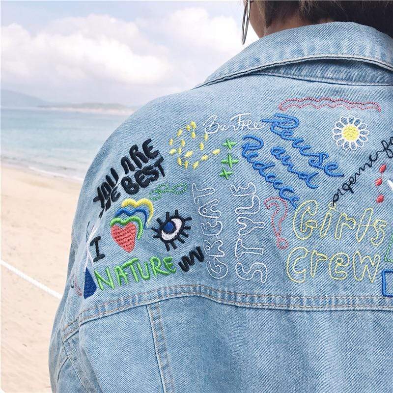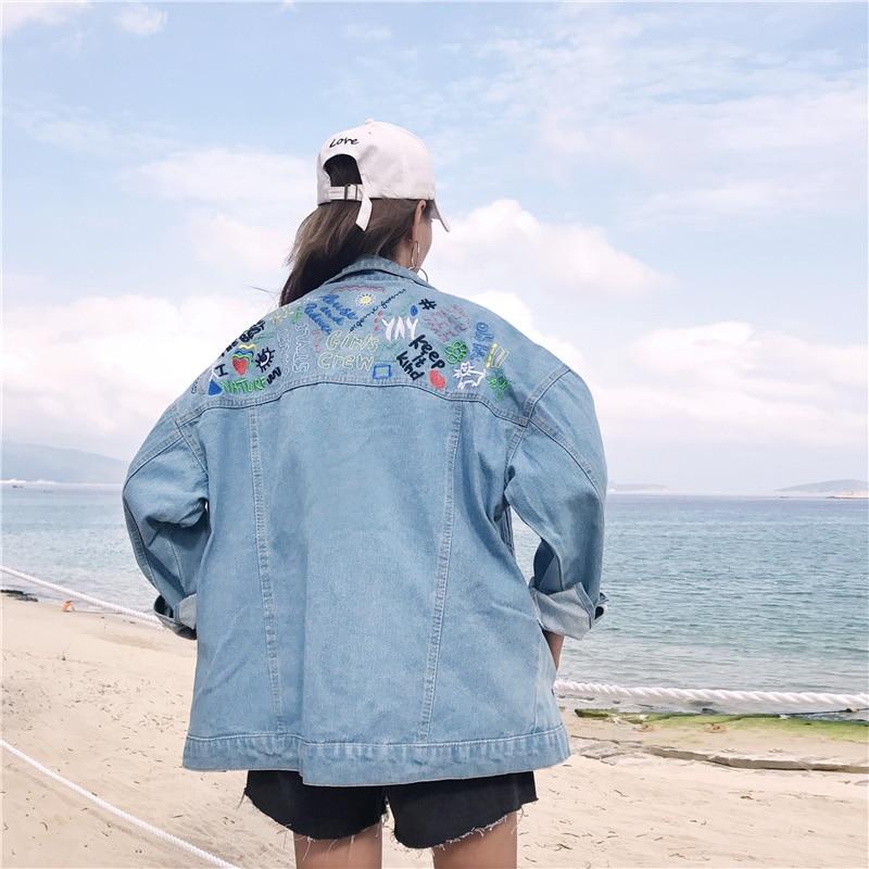 Perfect for those who have a casual and laid-back style. this oversized denim jacket with embroidered details will definitely add an interesting twist to your basic outfit. The retro and vintage design will look great with maxi dresses. leggings. jeans. shirts and even tank tops. Shoes and accessories can be mixed and matched to work with your mood or style idea for the day. The simple look of the jacket makes “street style” totally wearable too. Jacket sizes start from S to XL.