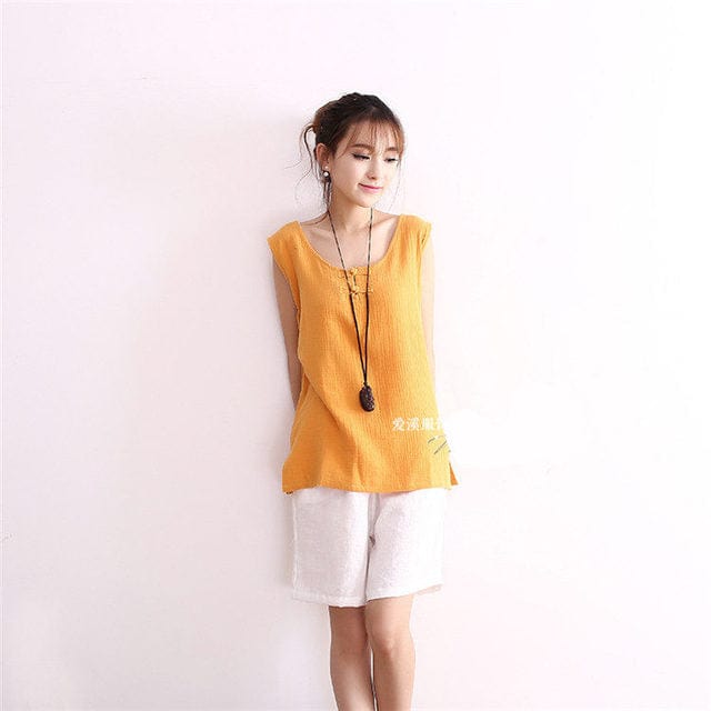 Looking for an everyday top that’s both comfortable and stylish? Look no further than the Enya Cotton Linen Tank Top from Buddhatrends. This tank top is made from a soft linen and cotton blend and comes in 13 different colors. so you’re sure to find one that’s perfect for you. It’s also available in sizes from M to 6XL. making it a great option for everyone. Plus. thechinese knot buttons add a touch of style. Whether you’re wearing it with shorts or linen pants. this tank top is a great choice for any day.