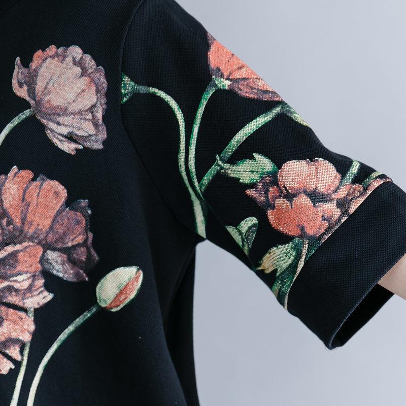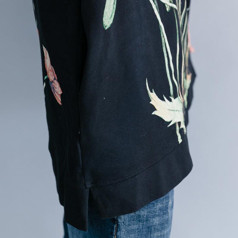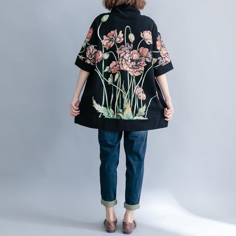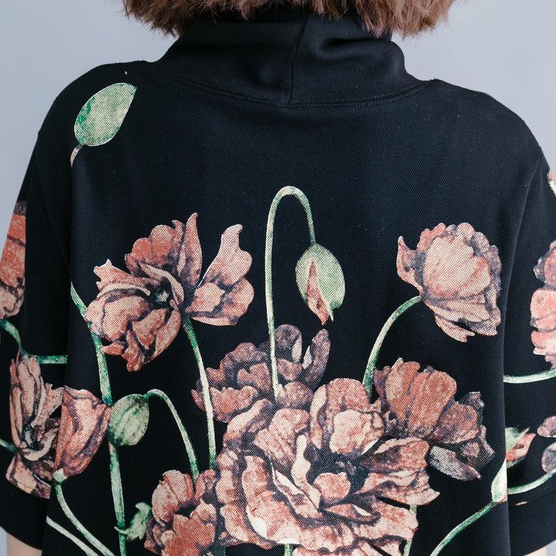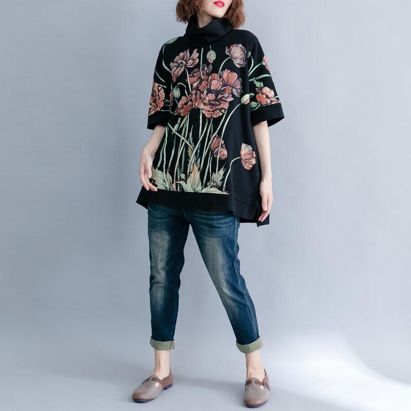 Create a bold look while staying demure in the flowery print of our Floral Short Sleeve Turtleneck. Large pink flowers in bloom have been stitched onto a deep dark cotton blend fabric for a top that has a depth and intrigues the eye. Slip-on this turtleneck for a fashionable autumn/winter piecethatcan be sported whenever you need a touch of warmth in addition to your style.