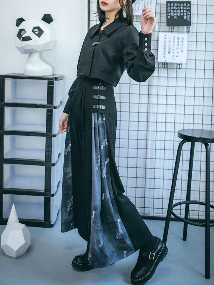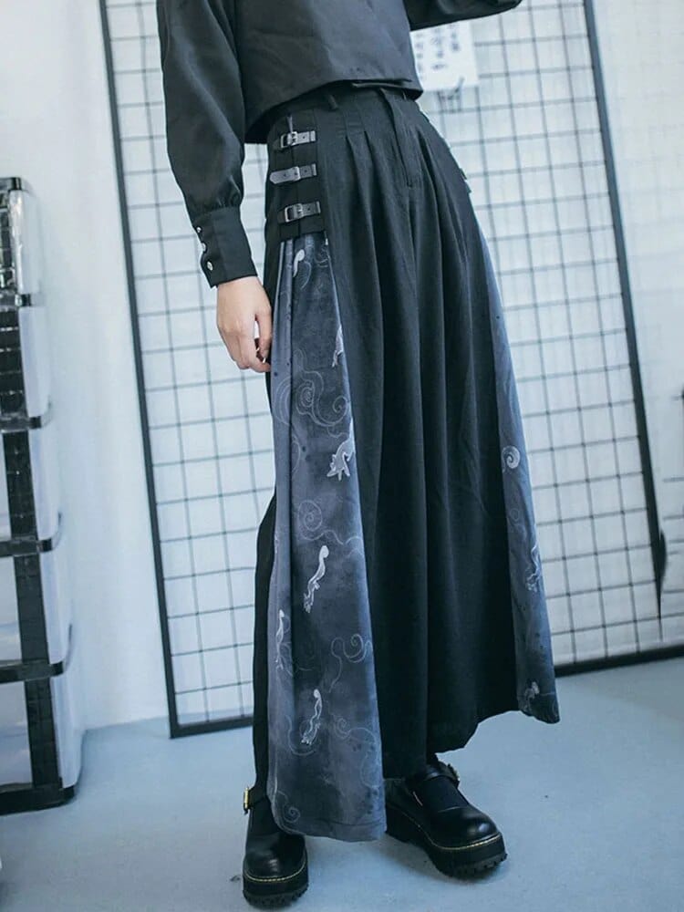 The Harajuku Patchwork Pleated Palazzo Pants are a captivating fusion of style and comfort. These pants feature a flowy. soft. and breathable fabric that drapes elegantly. giving the illusion of a skirt while maintaining the functionality of pants. The unique patchwork design adds an eclectic touch. making them a standout fashion choice. Notably. they are equipped with three belts on each side. enhancing their visual appeal and offering a customizable fit. Crafted from high-quality materials. these palazzo pants seamlessly blend fashion-forward aesthetics with practicality. ensuring you look chic and feel comfortable all day long.