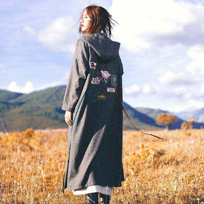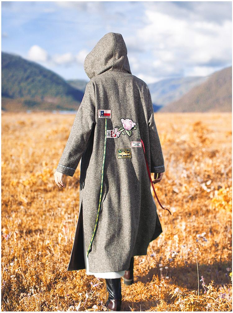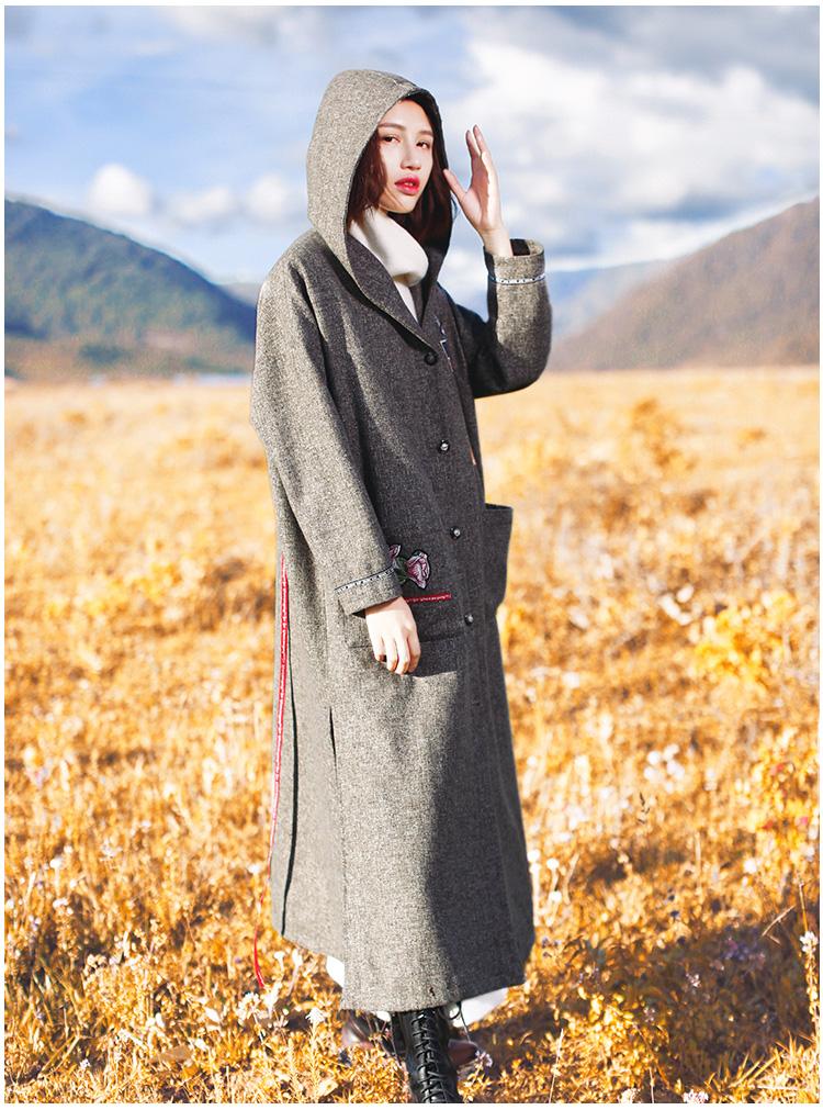 Hooded Embroidered Woollen Coat