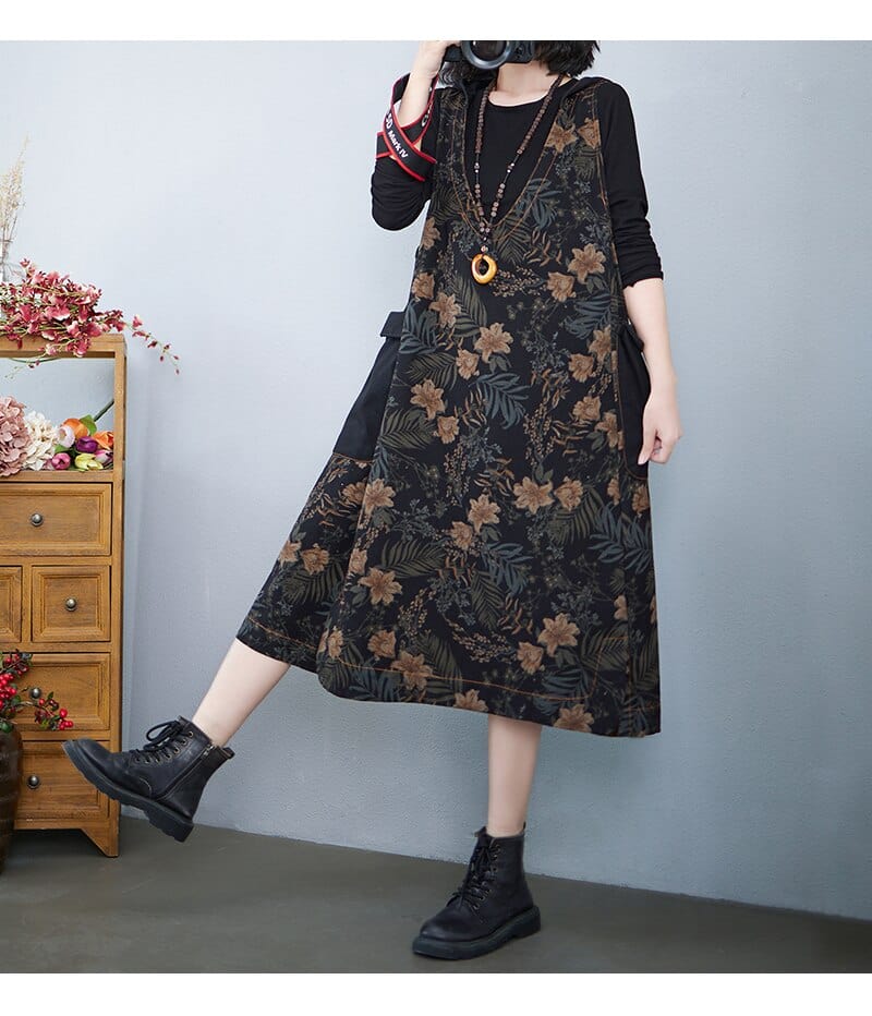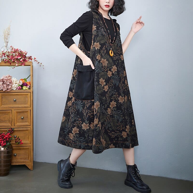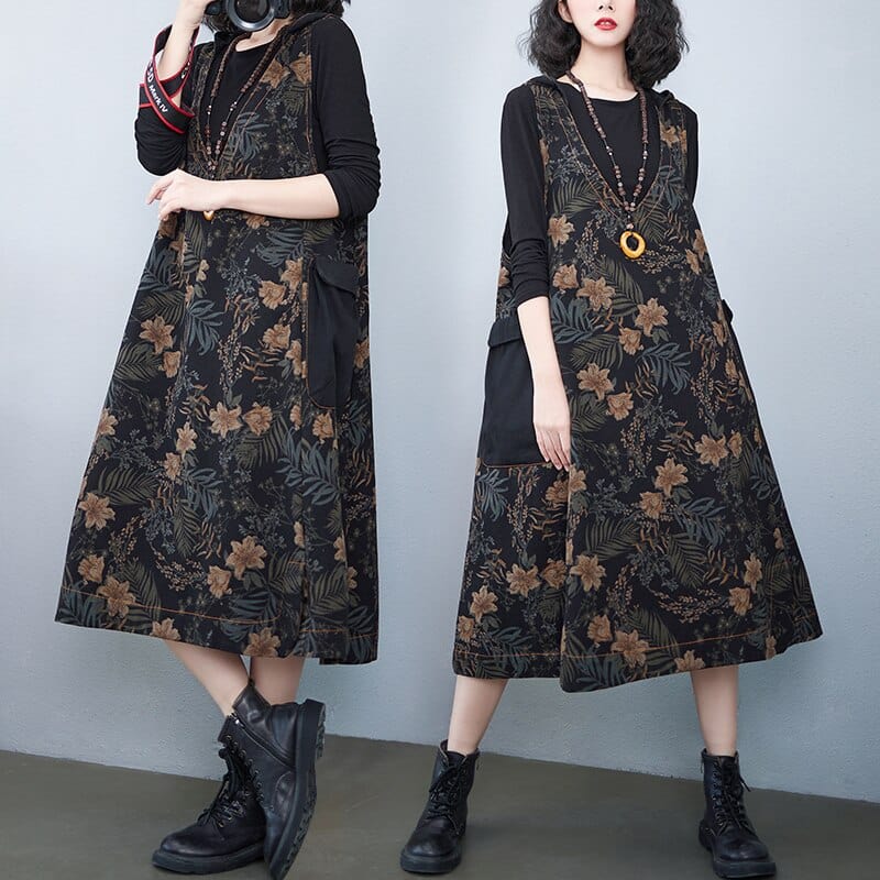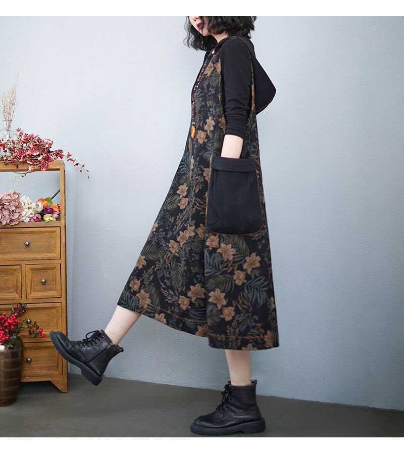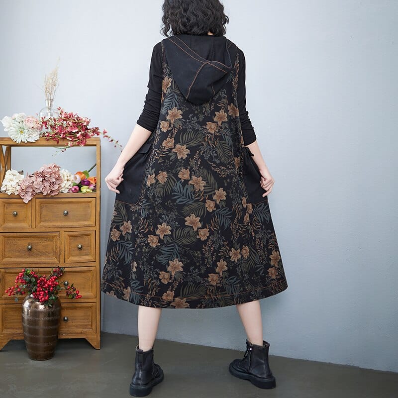 Hooded Floral Overall Dress
