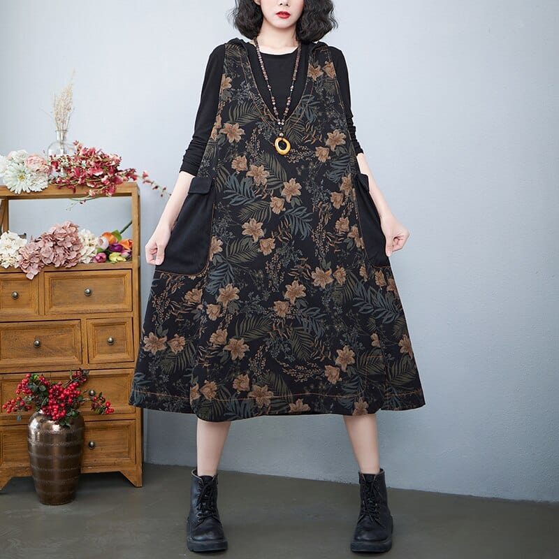 Hooded Floral Overall Dress