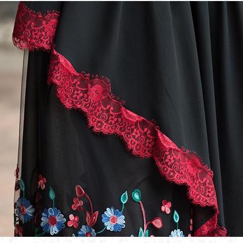 The sexy lace of our Lolita Asymmetrical Floral Maxi Skirt will have you feeling flirty and fun. This skirt is multidimensional with its layered fabric. bold floral print. spicy red lace. and asymmetrical cut. This skirt reminds one of a salsa dancer with its red accents and flirty feminine shape. You can wear thispiece out for a date or a fun night out with the girls. Pair with a ruffled blouse and heels and you will be ready to go.