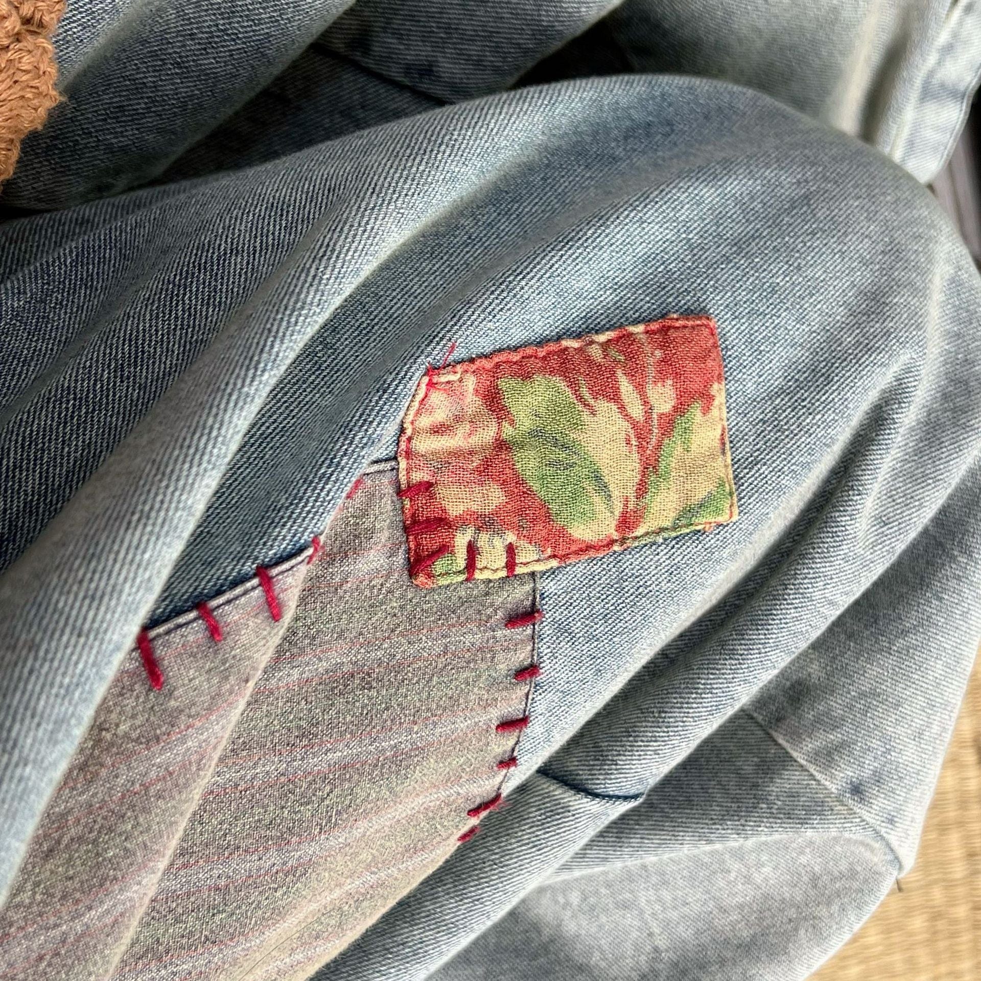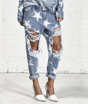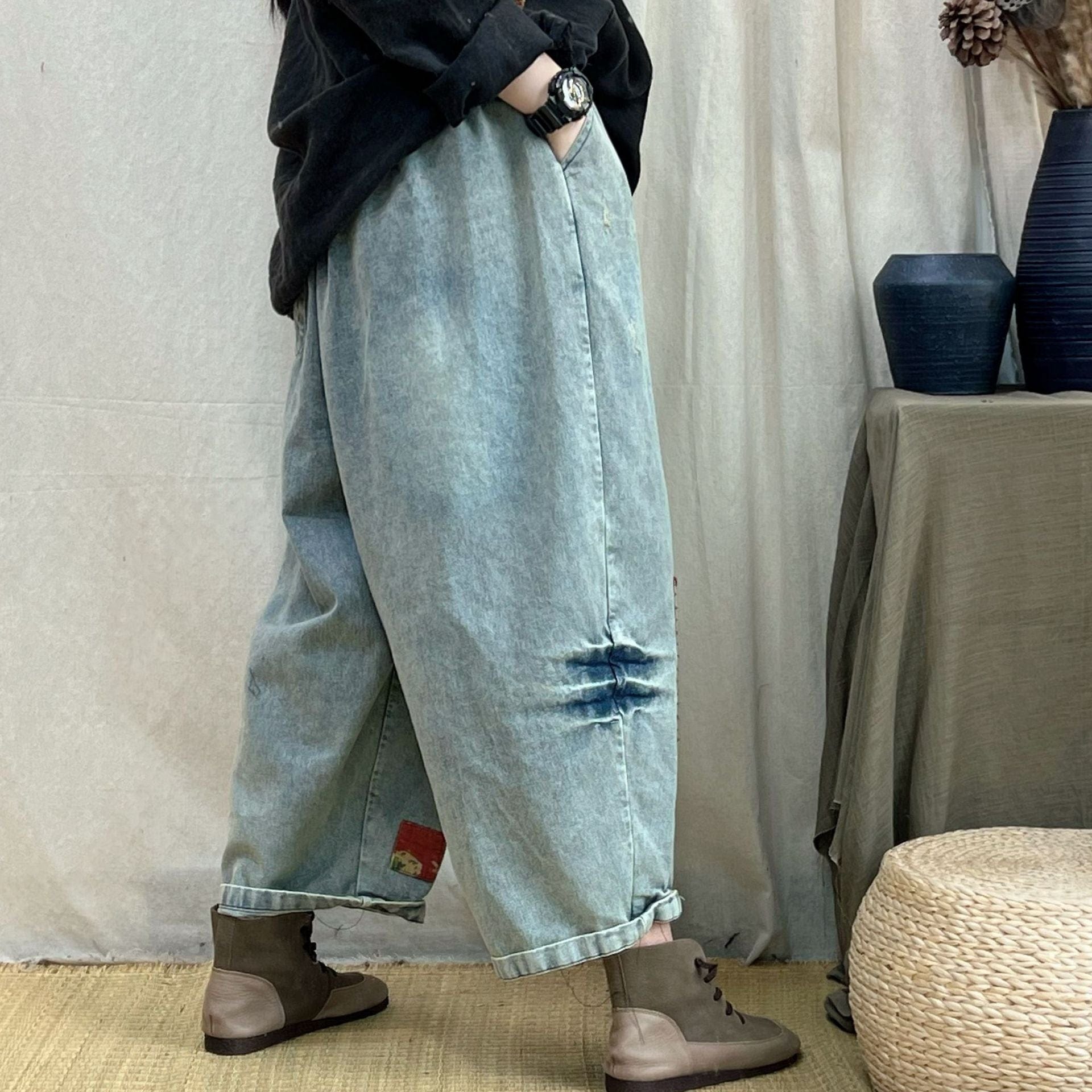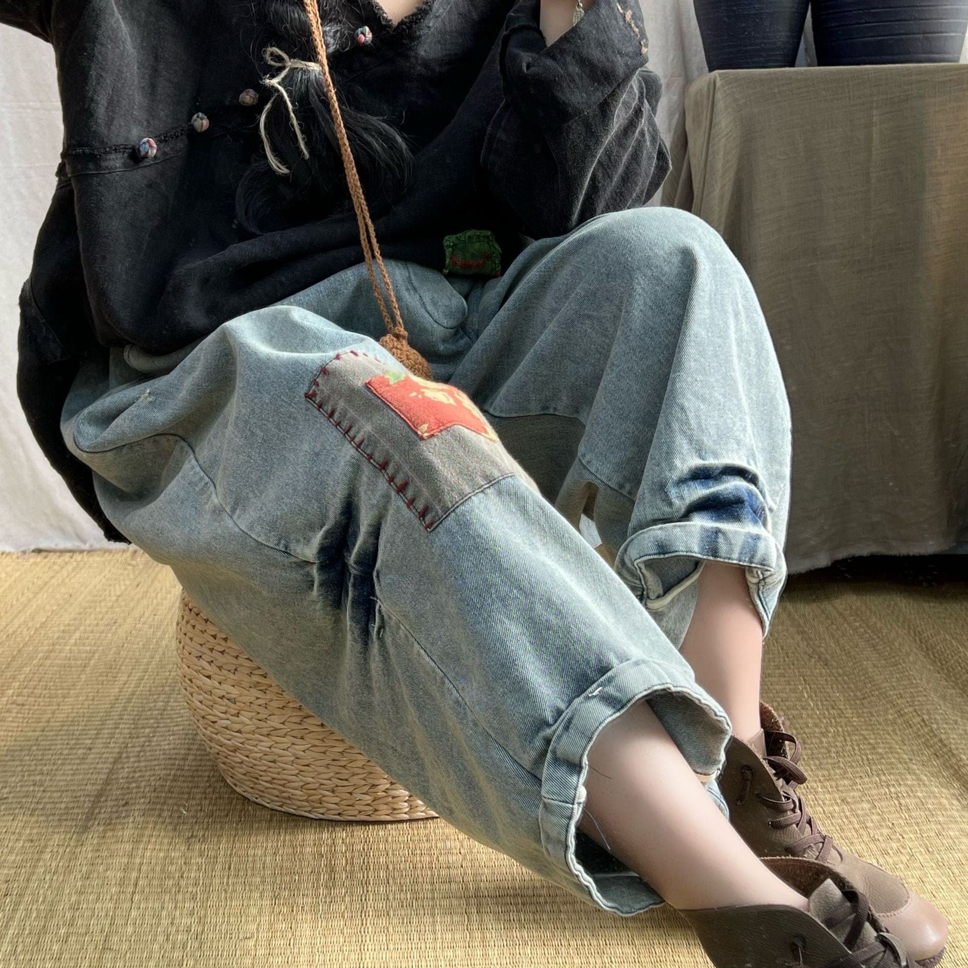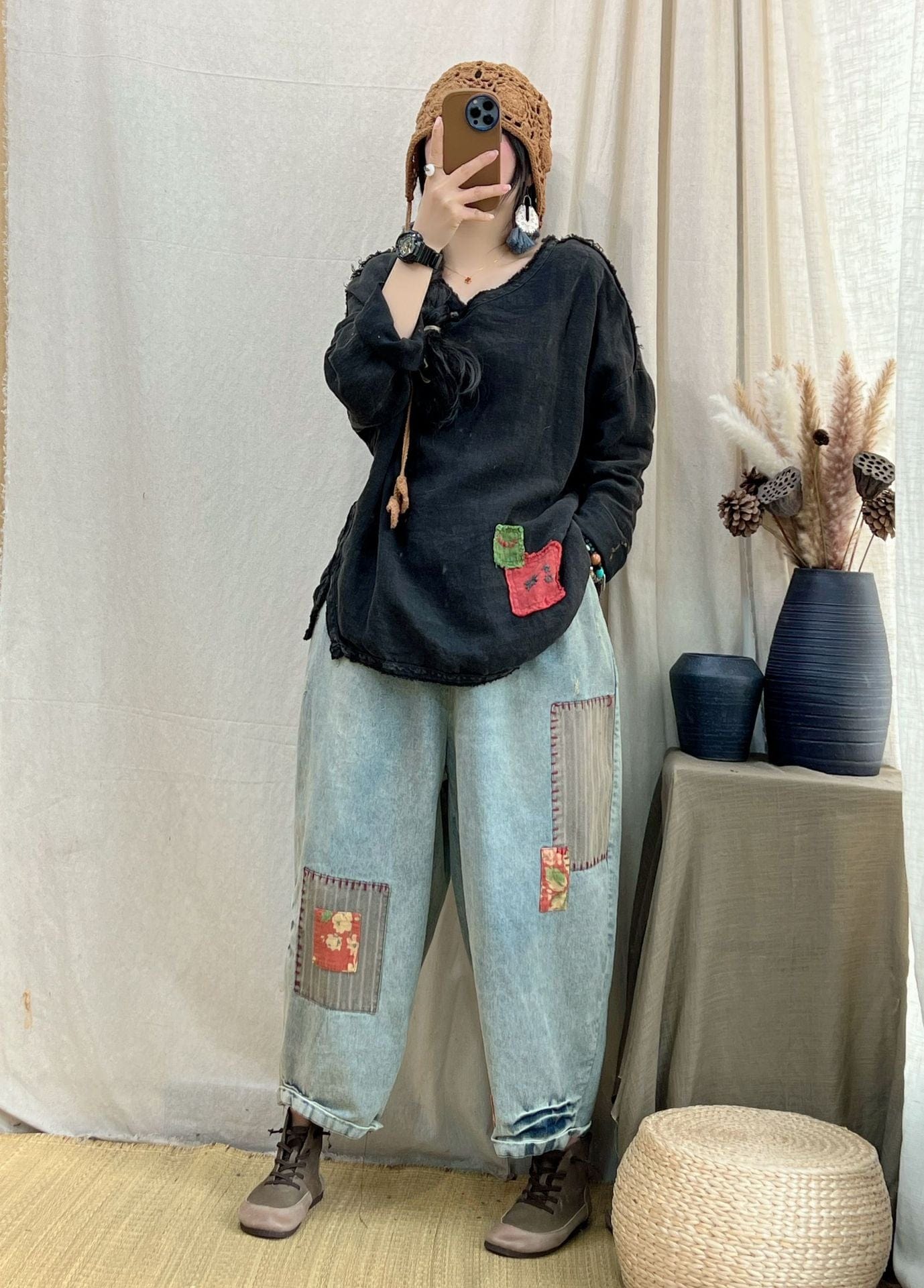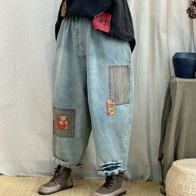 If you don’t want to wait for that worn-in look. invest in these Loose Patchwork Boyfriend Jeans. Cut in denim for a comfortable fit. the pair boasts light wash. patchwork. anda distressed feel. To complete the nonchalant aesthetic wear with printed tees. oversized knits. and slip-on trainers.