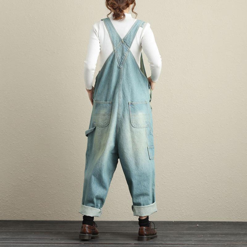 Country style with a chic twist is shown here in our Loose Ripped Denim Overall. Durable denim material has been distressed for a fashionable twist on the classic overalls. This fabric. when paired with its low hanging fit. gives this piece a resemblance to harem pants for an ideal streetwear style. Wear these overalls over-top your favorite top paired with boots or heels for a high fashion look that can be worn day to day.