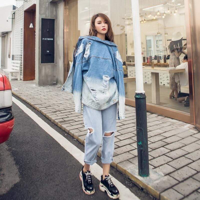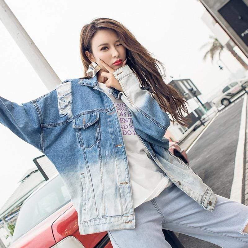 Ombre Gradient Distressed Denim Jacket | Millennials