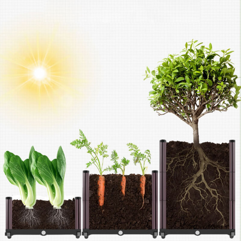 Our elevated garden boxes with deep enough space to build higher wall planting areas for the deep-rooted plants. and flowers to the climbing plants. root plants get enough growing space to make your flowers grow healthy. special for home. yard. patio. balcony. deck. front door.