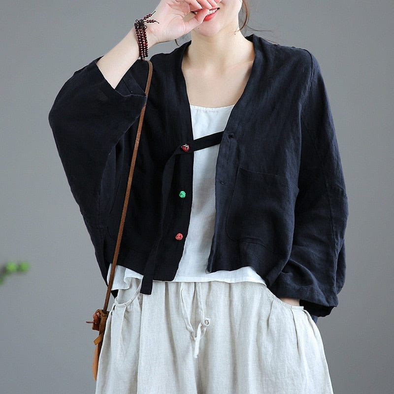 A long sleeve V-neck Cardigan is the perfect choice if you are wanting to warm up in the transitioning seasons. This cardigan is decorated with colored buttons to add personality to a piece that could be considered simple making it ideal for the woman in need of a comfortable statement item. Pair this long sleeve cardigan with everyday wear to add flare and a signature touch.