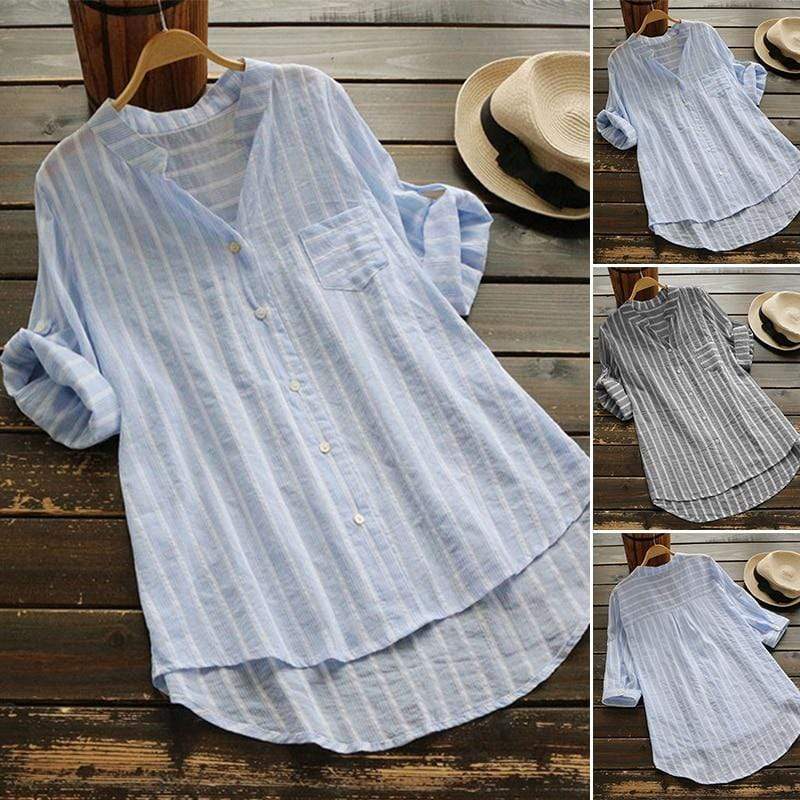 Here we have the perfect oversized. stripedbutton-down shirt. When you want a casual and comfy top to cover up in. this is it. Just right with your favorite jeans. add a big shoulder bag to stand out and you are good to go! A wide belt is quick to transform this cotton button-down into a stylish shirt dress.This oversized piece is the right choice for work or play. running around town or lounging at home.