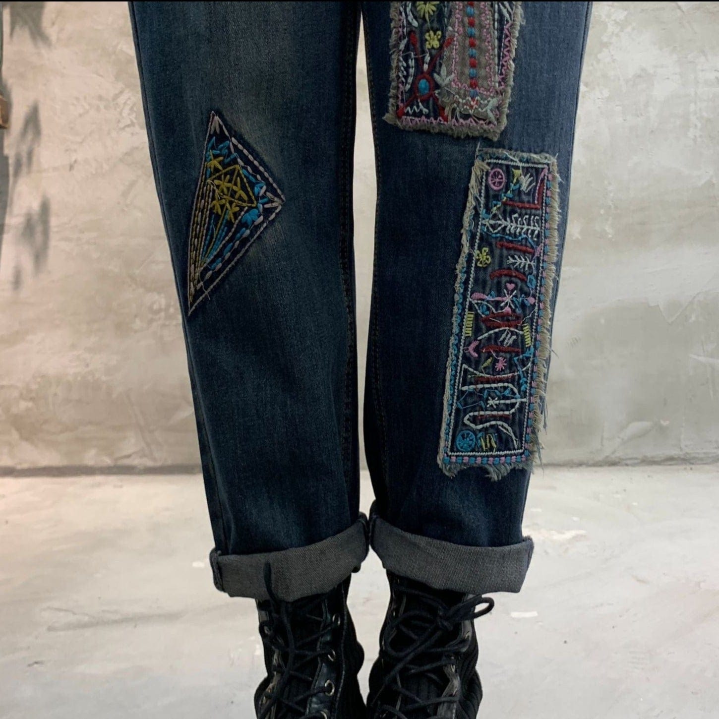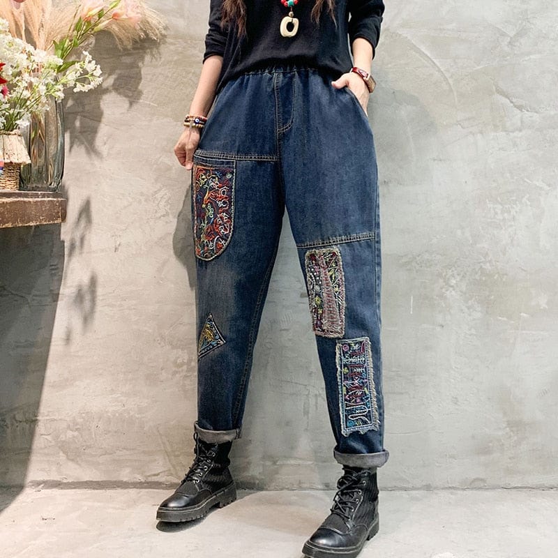 Vintage-inspired. embroidered. loose-fitted hipster jeans are the perfect pick to add an edge to any outfit. With their patchwork. embroidery. and multicolor denim these hipster jeans are sure to dazzle anywhere you go. Wear these jeans to a friend’s get-together. to the store. or out for a walk. and be prepared to be the star of the show!