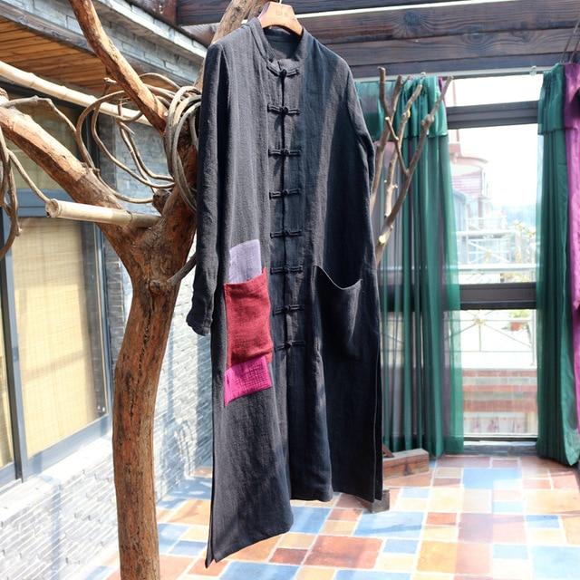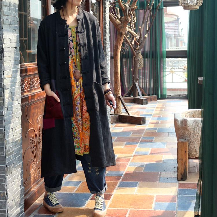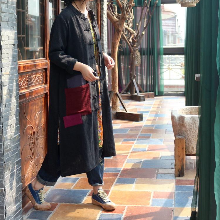 This clothing piece is a must-have as a part of your casual attire. It is manufactured from linen and cotton. both materials that will literally hug your skin and make you feel cozy and comfortable. Because of the interesting vintage design together with the patchwork details on the pockets and the wide cut with the extra long length. this trench coat will become your favorite one.