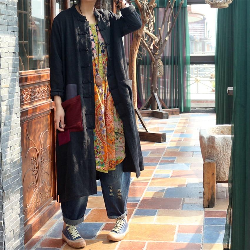 This clothing piece is a must-have as a part of your casual attire. It is manufactured from linen and cotton. both materials that will literally hug your skin and make you feel cozy and comfortable. Because of the interesting vintage design together with the patchwork details on the pockets and the wide cut with the extra long length. this trench coat will become your favorite one.