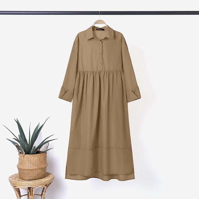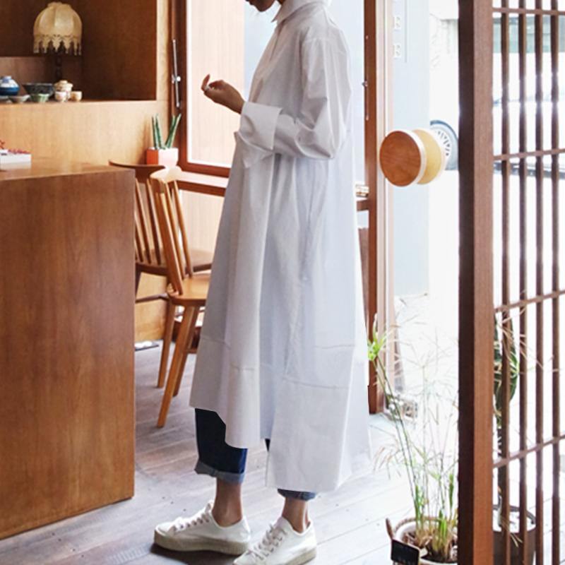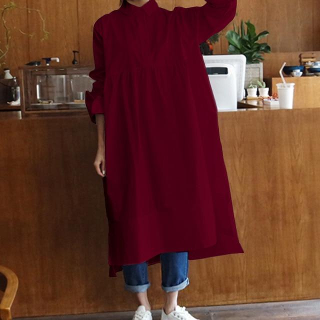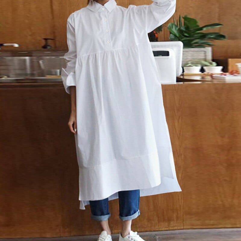 When you think of a shirt dress you may think of your typical collared and button-down ensemble. Well. this shirt dress is here to change your perception! Not only is it uniquely structured but it is spacious and comfortable. making it perfect for your everyday outfit. With its adorable button accent. this oversized shirt will be your go-to piece to wow year-round.