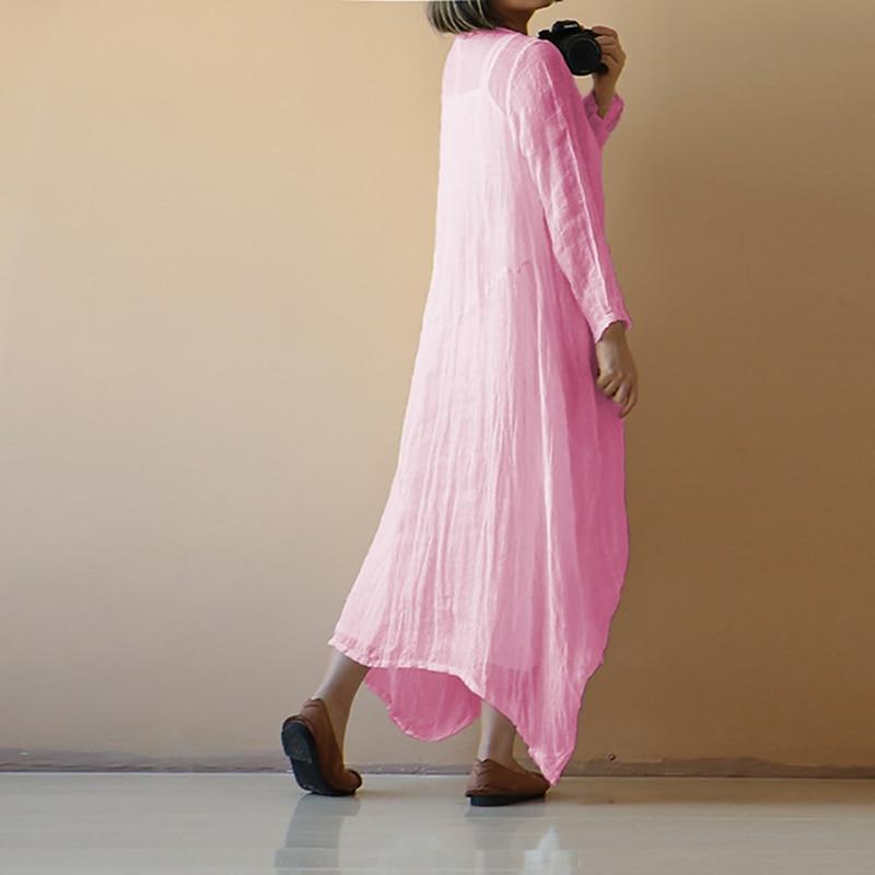 Show your true colors in thispure color maxi dress. Thelong sleeves. loose fit. and cotton material of the dress will keep you comfortable as you go through your day. Pockets will allow you to carry your phone. keys. and small daily essentials if you don’tfeel like carrying a bag around.