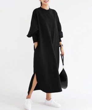 Show your true colors in thispure color maxi dress. Thelong sleeves. loose fit. and cotton material of the dress will keep you comfortable as you go through your day. Pockets will allow you to carry your phone. keys. and small daily essentials if you don’tfeel like carrying a bag around.