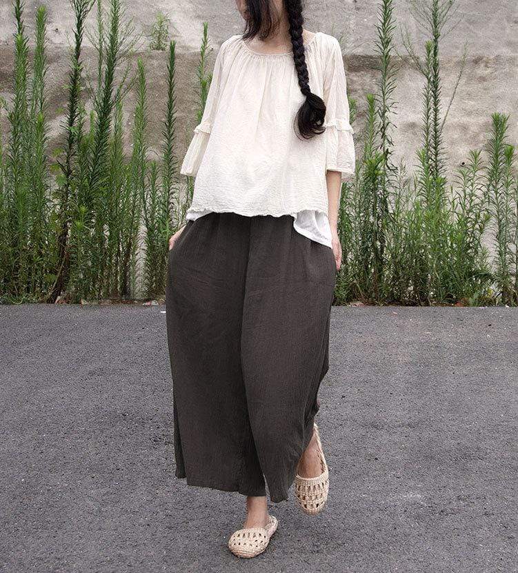 Stay calm and comfortable in the sweet stylings of our Ramie Vintage 3/4 Palazzo Pants. These pants have a 3/4 length that resembles capris. this look creates a summertime feel and when paired with its airy ramie and cotton blend fabric they stay breezy and cool. The zen fashion of these pants makes them ideal for daily wear. Just pair with a tee and flats and you will be ready for a walk in the park.