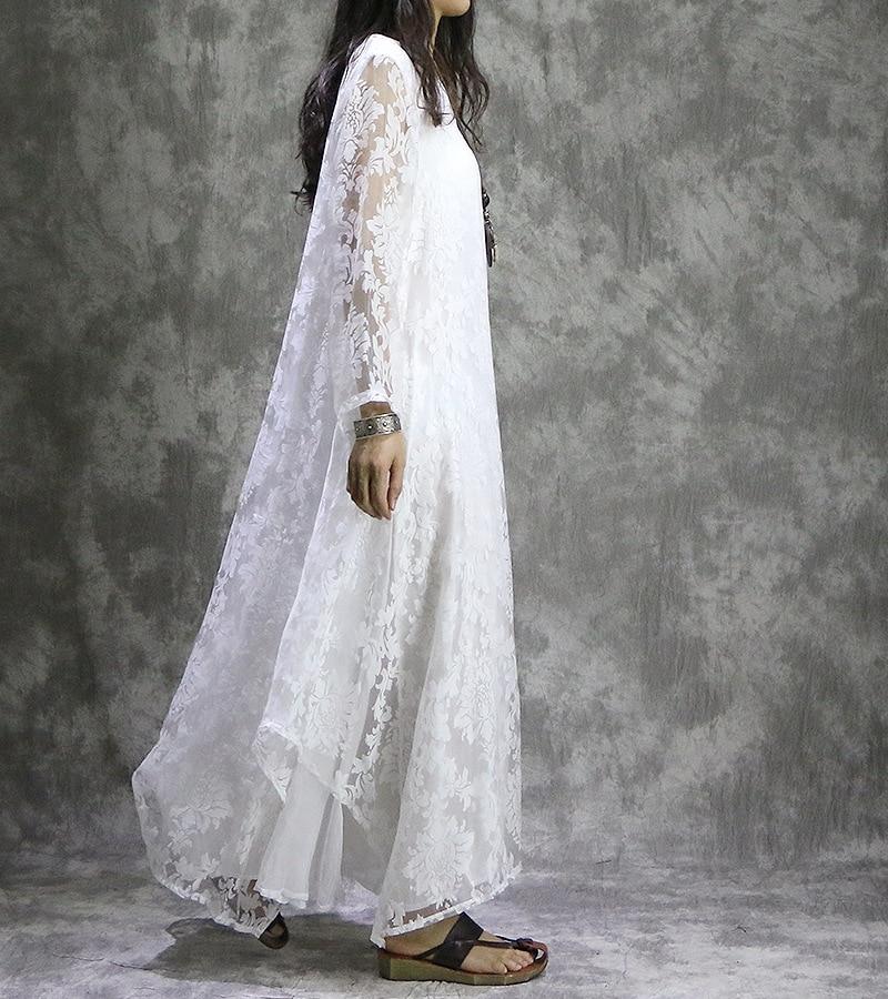 Feel carefree and light in the lace detailing of our Retro Embroidered Floral Maxi Dress. Its lace layer drapes over a silk blend fabric that sways in the wind as you strut your stuff. The retro styling of this maxi dress resembles 70s’ fashion that was loosely fitted for a free-spirited feel. This dress can be worn hanging free or belted paired with flats or boots to create a boho-chic vibe perfect for a sunny day out.