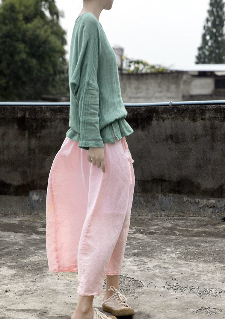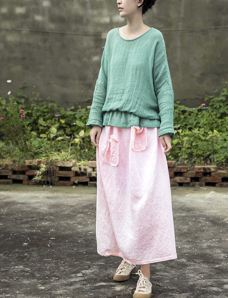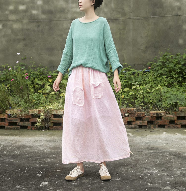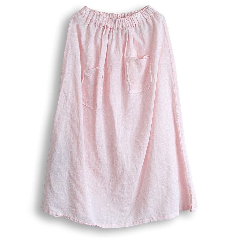 Looking for something a little different in a skirt? Check out the Soft Pink Linen Midi Skirt from our Lotus Collection. This skirt features patchwork pockets and is made of a light and airy linen material – perfect for those hot summer days. The loose fit and midi-length make this skirt both comfortable and stylish. and the soft pink color is sure to complement any outfit.