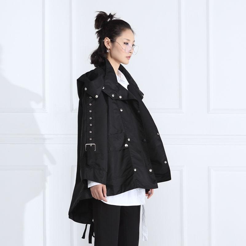 Asymmetrical. trendy. and fashion-forward. this jacket will suit you just right. It has a wide fit. it is double-breasted. and even with a practical hood. The details. such as the belts. add a dose of edginess and futuristic look together with its puffy look. It comes in one more than one size. but in order to achieve the modern-look aim for an oversized fitting.