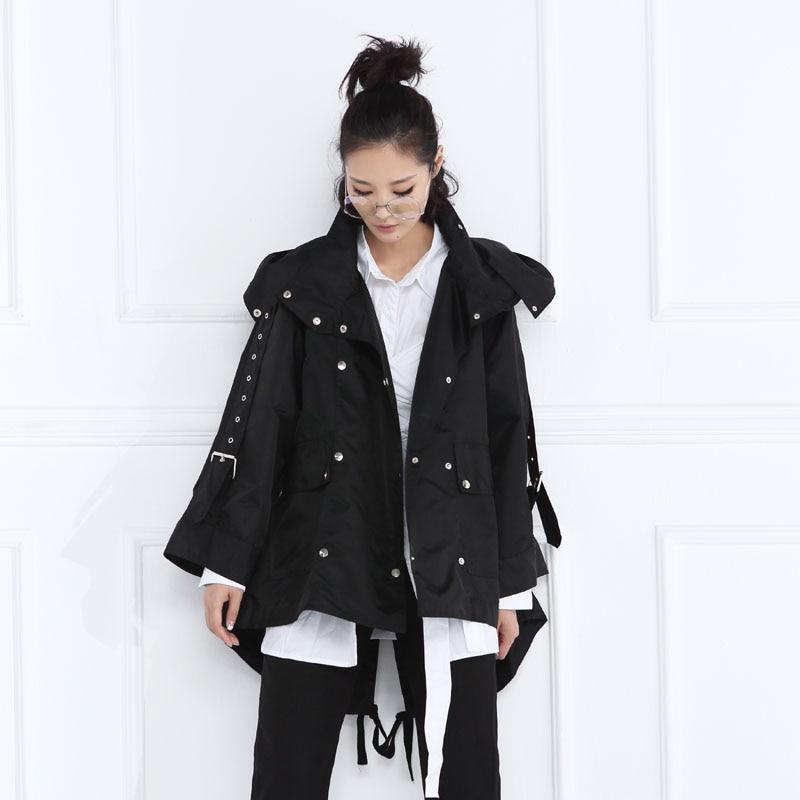 Asymmetrical. trendy. and fashion-forward. this jacket will suit you just right. It has a wide fit. it is double-breasted. and even with a practical hood. The details. such as the belts. add a dose of edginess and futuristic look together with its puffy look. It comes in one more than one size. but in order to achieve the modern-look aim for an oversized fitting.