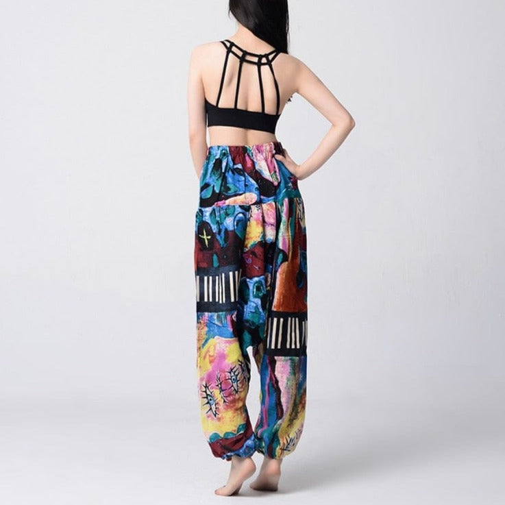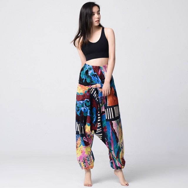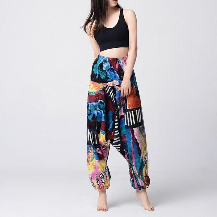 Be a walking art piece in our Artist’s WayHarem Pants. The complex and artful design brings to life the intricately crafted abstract design. The brightly colored print is transcendental and lively which creates a bold look. These pants are sure to breathe life into the mundane day-to-day outfit. Pair them with a solid print top that’s color mimics the colorful pattern and some shoes that are simple and clean-cut to style.