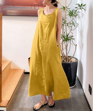 Stand out and stand tall in our new cotton linenmididress. It’s bold yet simple with plenty of room to expand your body. heart. and soul! On cooler days. this3/4 sleeve dress will keep you comfortable. Cotton and linen projectspeace andcalm and we hope you will feel that and carry it through your day whether you’re just out shopping or at the podium giving a lecture on mid-century French literature. This dress is casual enough for everyday wear andis perfect for hanging out with the girls. Some colorful artistic jewelry; necklaces. bracelets and anklets will add some zing to your look.
