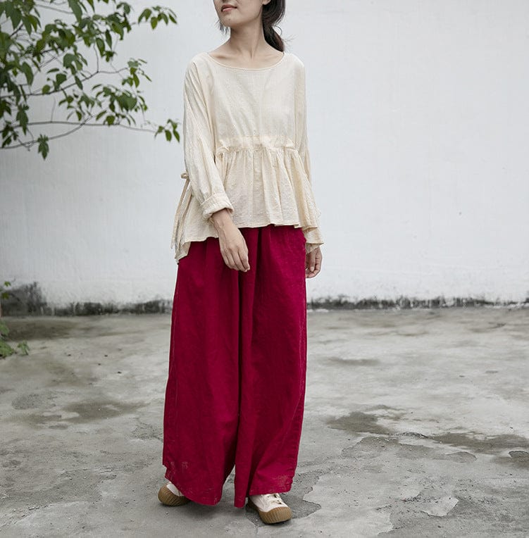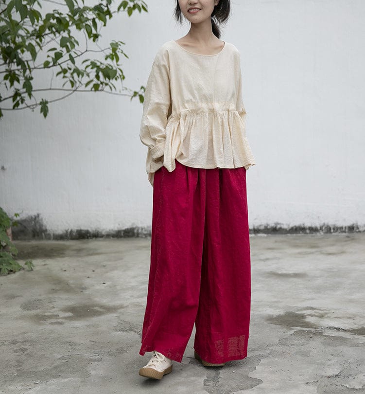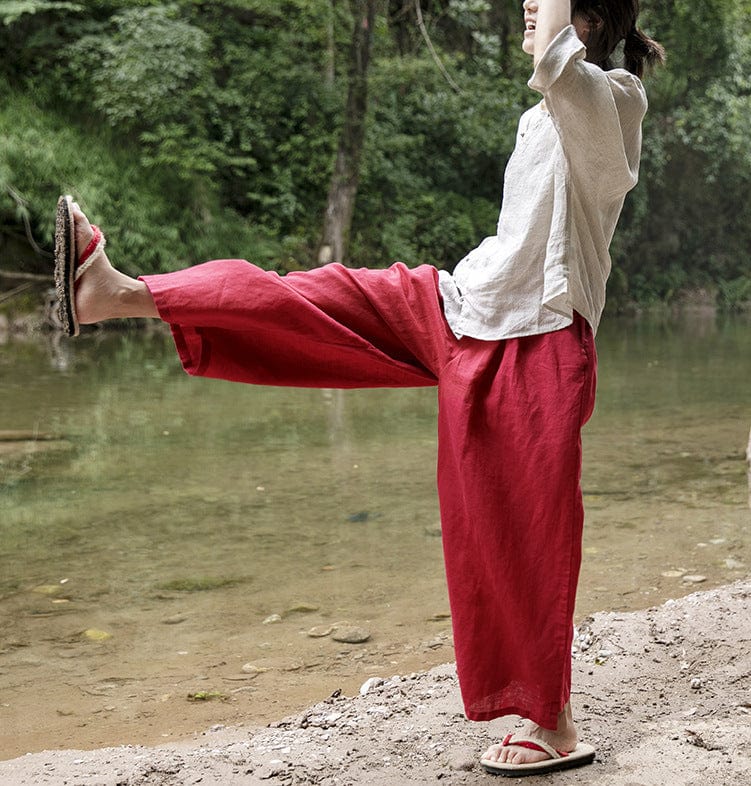 Looking for versatile and stylish pants that can be dressed up or down? Look no further than the Vibrant Red Cotton Linen Palazzo Pants from our Lotus Collection! Made from a lightweight cotton-linen blend. these pants are perfect for warm weather. They feature a wide-leg silhouette that is both flattering and comfortable. Plus. the vibrant red hue is sure to turn heads! Whether you pair them with a flowing top and sandals for a casual look or dress them up with a blouse and heels for a night out. these pants are sure to become a staple in your wardrobe