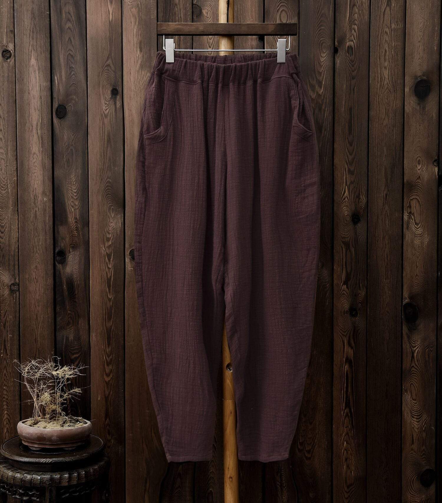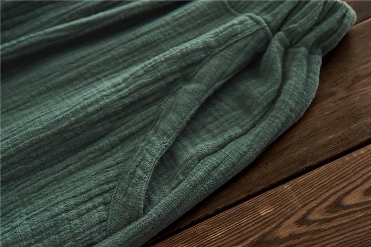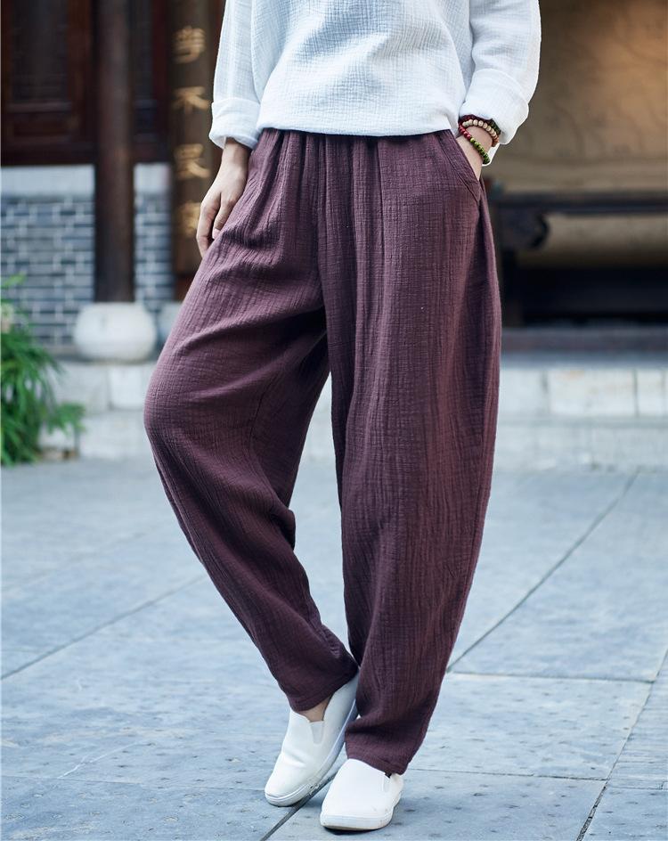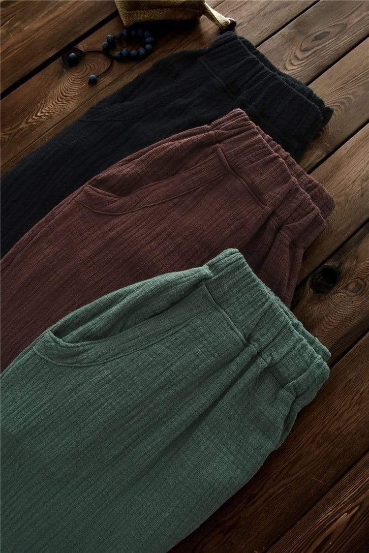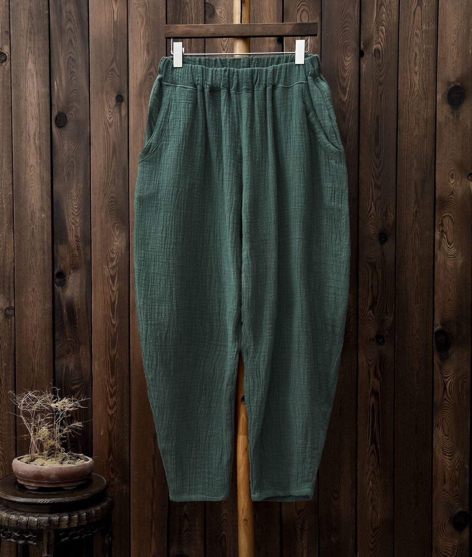 You have found the perfect combination of comfort and fashion in these Vintage Pleated Linen Pants. No longer await the end of the day to slip on a pair of comfy bottoms after a busy day out. their elastic waist. loose fit. and breathable linen will give you the comfort of sweatpants while their tapered fit and pleated structure will give you a look perfect for the workplace.